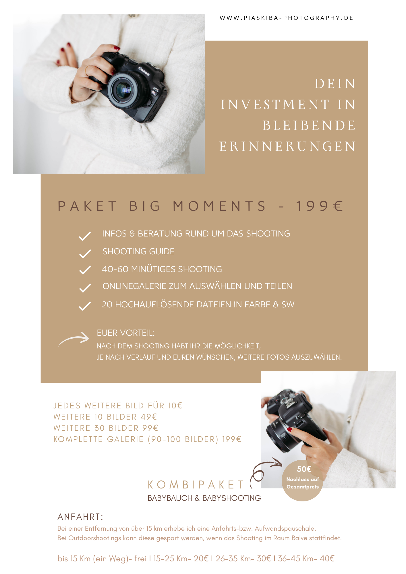 Bei der Buchung des Shootings erhaltet ihr außerdem einen umfassenden Shooting Guide. Darin teile ich meine Erfahrungen und beantworte eure Fragen, von Tipps zur Kleidung bis hin zu Vorbereitungen für ein Homeshooting.